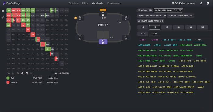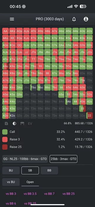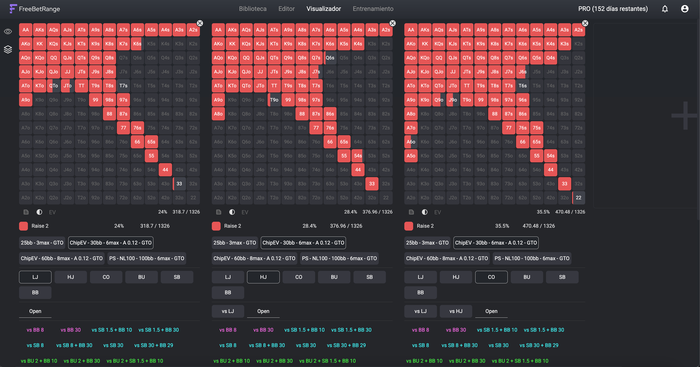 - GTO Puro – rangos originales del solver para un estudio en profundidad; - GTO Simplificado – la misma estrategia con pesos redondeados (0/25/50/75/100%) para facilitar el aprendizaje y la práctica.